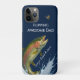 Celebrate your favourite fisherman with this “Flipping Awesome Dad” phone case featuring a vivid watercolor rainbow trout leaping toward a classic fly. Set against a deep navy background with refined gold accents, the design captures the artistry and excitement of fly fishing while showcasing your love for Dad or Granddad.