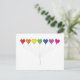Postcard with the art of Sandy Scharmer. Graphic of 7 rainbow coloured balloon hearts each on a string