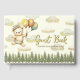 This adorable watercolor design features a sweet little bear floating among the clouds, gently carried by balloons over a peaceful woodland forest. The soft, neutral beige colour palette gives it a rustic yet elegant feel, making it perfect for gender-neutral themes.