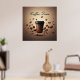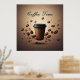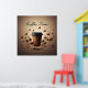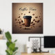 A disposable takeout coffee cup floats at the center, surrounded by rich coffee beans. Warm, cafe-inspired energy evokes morning routines, grab-and-go culture, and cozy beverage moments.