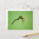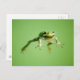Floating frog in transparent and calm water . postcard