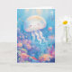 This playful image features a cute jellyfish with a smiling face surrounded by colourful coral and small fish in an underwater scene. The jellyfish glows with soft pastel colours, and its translucent body gives it a magical, ethereal appearance. The vibrant coral and lively sea creatures contribute to the lively and joyful atmosphere of the image, creating a serene yet whimsical underwater world.