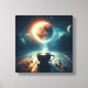 The warm moonlight reflecting on the coffee’s surface adds a sense of tranquillity and depth, while distant planets and stars illuminate the atmospheric background with ethereal beauty. This high-contrast surreal design celebrates the artistry of imaginative visuals, making it ideal for modern interiors, contemporary bedrooms, creative offices, and cozy coffee corners. The composition of glowing celestial bodies and grounded elements evokes harmony, peace, and limitless inspiration, turning any wall into a statement of creativity.