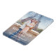 This whimsical save the date magnet is ideal for a winter or destination wedding. It features a picture in the background. There are three floating snowflakes on top with a blue gradient that covers the picture. The blue tint adds a cooling effect ideal for a winter event.