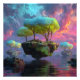Floating Turquoise Tree Islands Neon Sky Photo Print