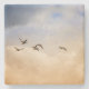 This design features an image of a flock of birds, flying through a cloudy blue sky. Sunlight is streaming in the distance. The animals in flight can be seen as symbols of freedom or simply as a beautiful sight.