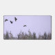 Four ravens (Corvus corax) flying on a cloudy day; looking for trouble and sure to find it. Customize by adding your own text.