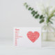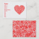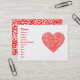 A business card with an attractive flocked floral heart design drawn red on white. The back shows a detail of the flower drawing.