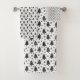 Ce joli ensemble de serviettes de bain noir et blanc de Noël, dispose d'un arbre de Noël fantaisiste et d'un motif de flocon de neige.