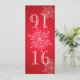 Conception de flocon de neige rouge numéro de table DIY. Changez le numéro pour chaque table et commandez individuellement pour que les numéros de table soient coordonnés avec les invitations correspondantes. Plier en deux fait une carte de numéro de table de 4" x 4 5/8".