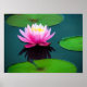 Pintura digital de uma bela Ninfeia Rosa. A flor rosa destaca-se entre as folhas verdes, compondo um belo quadro. No detalhe é possível ver as anteras douradas destacando-se no fundo rosa. As pétalas ao redor das anteras lembram uma taça colorida, muita bonita.