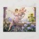 A fine art postcard with the painting, Flora (1913), by the French artist Louise Abbéma (1853-1927). A portrait depicting Flora, who in Roman mythology was the goddess of spring and flowers. She is surrounded by purple hydrangeas, roses and sunflowers.