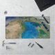 15 juillet 2012 - Vue satellite de la floraison de phytoplancton bleu tourbillon en mer Noire. Ce brillant motif cyan éparpillé à la surface de la mer Noire est une floraison de phytoplancton microscopique. La multitude d'algues unicellulaires dans cette image sont probablement des coccolithophores, l'un des champions du pompage du carbone sur Terre. Les colithophores éliminent constamment le dioxyde de carbone de l'atmosphère et l'envoient lentement au fond marin, une action qui aide à stabiliser le climat de la Terre. Notez que l'image est pivotée pour que le nord soit à droite.