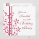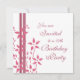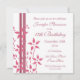 Custom 17th Birthday party invitations in elegant honeysuckle pink and white floral pattern. Add your name and party details for a unique and stylish birthday party invitation.