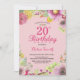 Floral 20th Birthday Invitation for Women Pink