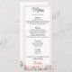 Floral 60th Birthday Menu Cards 60 fleurs menu. Améliorez votre fête du 60e anniversaire avec cette carte de menu élégante et personnalisable, avec un design floral dynamique au fond. La douce bordure rose encadre l'agencement sophistiqué, mettant en avant de délicieux plats, des entrées aux desserts. Parfait pour un événement d'anniversaire, cette carte de menu ajoute une touche personnelle et élégante à votre table. Personnalisez-le avec vos options de repas et le nom du célébrant pour créer un souvenir unique pour la journée spéciale. Bon appétit !