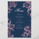 Floral 60th Birthday Program Rose Gold Navy Menu