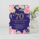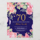 Floral 70th Birthday Gold Glitter Navy Blue Invitation