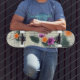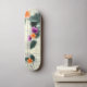 This skateboard deck showcases an elegant fusion of floral and abstract elements. Featuring vibrant flowers in orange, purple, and pink, set against a geometric grid and botanical leaf patterns, the design is both contemporary and captivating. The soft cream background complements the vivid hues, creating a balance of energy and sophistication. Perfect for skaters who appreciate stylish and artistic details, this deck brings a modern twist to nature-inspired aesthetics.