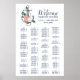 This floral anchor summer alphabetical seating chart poster is perfect for a nautical theme wedding. This sign can be used to organize your guests alphabetically or by table number. The design features a beautiful bouquet of blush pink and white summer flowers wrapped around a watercolor boat anchor. This wedding poster includes enough room for up to about 120 guests. Make room for more (or less) guests by clicking the "customize" button and decrease or increase the size of the font. In addition to the placement of each guest, personalize this sign with the names of the bride and groom and the wedding date.