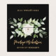 Pretty and chic floral and greenery professional business card features your name in modern gold colour script lettering on a black background and includes a place for your QR code.