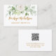 Floral and Greenery Gold Script with QR Code White Business Card