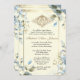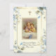 Personalize our beautiful traditional blue floral Catholic ivory baptism invitations with a beautiful line art drawing of the Holy Family, Jesus, Mary and St. Joseph. and the Guardian Angels with Baby on the front. All text and fonts can be modified.