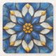 Floral Azulejo Blue White and Yellow Square Paper Coaster