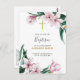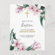 Invite your loved ones to your child's baptism or christening with this elegant floral invitation. The beautiful design features a frame of delicate pink magnolias and emerald green leaves. Inside the watercolor floral, custom text is written below a pretty gold cross. The text is editable and can be changed to suit a communion or confirmation instead. On the back, you can add the event location, RSVP information, and reception details.