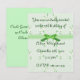 Lovely party invitation in a green floral design, with a sweet ribbon and bow accent. Customize the text on the front and reverse sides of this card to personalize it.