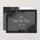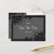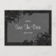 © Sunny Mars Designs - Floral Hibiscus: Black on Dark Grey Wedding Save The Date Post Cards - Modern, elegant, classy, trendy, chic customizable Gothic wedding save the date post cards with beautiful, gorgeous Goth black swirly floral tropical hibiscus design.