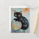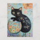 Floral Black Cat with Goldfish Postcard