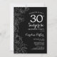 Floral Black White Surprise 30th Birthday Party Invitation