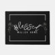 Beautiful Black and White Floral Botanical Modern Front Door Mat with White Elegant Modern Script and Serif Font That Says BLESSED With Your Name Customized On It!