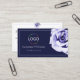 Floral Blue and White Cute Rose with Logo QR Code Business Card