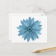 This sweet and simple floral post card features a hand drawn daisy in complementing shades of blue highlighted against a crisp white background.