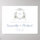 Floral Blue Hydrangea Crest Monogram Welcome Sign. Dusty Blue Wedding Welcome Sign. White Hydrangea Flowers Greenery Watercolor Wedding Crest Poster