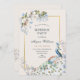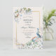 Floral blue peacock bird invitation