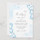 This invitation combines the elegance of chic design with the serene beauty of blue watercolor florals. The design features delicate flowers in varying shades of blue, from soft baby blue to deep indigo, artfully rendered in a watercolor style that adds depth and fluidity. The floral elements are thoughtfully arranged to frame the couple’s names, which are highlighted in an elegant script font. The wedding details are presented in a clean, modern typeface, creating a balanced and sophisticated layout. The watercolor effect gives the invitation a light and airy feel, while the blue palette evokes a sense of calm and timeless elegance. This invitation is perfect for couples seeking a stylish and refined design with a touch of artistic flair, ideal for a wedding that blends modern chic with classic romanticism.