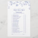 Introducing our stunning French Blue & White Victorian Bridal Shower Game! This game "he said she said who was first" is the perfect addition to your upcoming bridal shower. It features a refreshing mix of traditional and modern style, with classic hand drawn blue Victorian florals of garden flowers, bees, and butterflies on one side. Plus, you can customize it with your own bridal details in modern hand lettered calligraphy to make it truly unique. And as a special added touch, turn it around to find a coordinating blue texture on the back adding even more detail. Don’t hesitate - this one-of-a-kind game will make your event one everyone will remember! View suite here: https://www.zazzle.com/collections/french_blue_white_victorian_floral_bridal_shower-119265327422133417 Contact designer for matching products. Copyright Surridge Design Co. for Elegant Invites, all rights reserved.