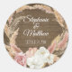 Floral Blush Boho Pampas Palm Rustic Wood Wedding Classic Round Sticker