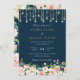 Floral Blush Navy String Lights Elegant Dark Wedding Invitation
