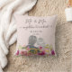 Floral Blush Peonies Trendy Script Mr. and Mrs. Throw Pillow