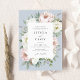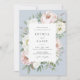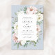 Floral Blush White Peony Dusty Blue Frame Elegant Wedding Invitation. Romantic Blush Pink Wedding Invitation Template