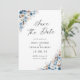 Blue Boho Floral Enregistrer La Carte Date. Cette invitation à la douche nuptiale élégante et élégante présente de magnifiques aquarelles peintes à la main, Blue Boho Floral. Trouvez les articles correspondants dans la collection Florale Boho Bleu.