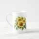 This lovely bone China mug is shown in white with a pretty floral sunflowers watercolor print.