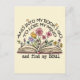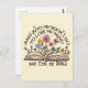 This cute and colourful floral postcard features the words "And into my book I go to lose my mind and find my soul" with pretty colourful books surrounded by flowers. It is a perfect gift for librarian and book lover friends and family members.
