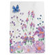 Pink and purple watercolor floral border with butterfly on a white background.