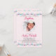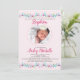 De minuscules fleurs roses, fuchsia et lavande bordent le haut et le bas de cette adorable invitation. Un cadre ovale pointillé tient la photo de votre bébé.<a href="https://www.freepik.com/free-vector/hand-drawn-little-flowers-cute-background_893430.htm">Conçu par Freepik</a>). <br/>() La carte est facile à customiser avec votre libellé, police et couleur de police.<br/>() Pas exactement ce que vous cherchez? Tous nos produits peuvent être conçus sur mesure pour répondre à vos besoins sans frais supplémentaires.<br/>() Il suffit de nous contacter à askcottonlamb@gmail.com .<br/>() Coordination des produits disponibles : Il suffit de nous demander!