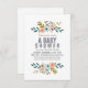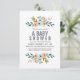 The invitation features a floral bouquet illustration with the shower details written in modern type. The invitation can be customized to suit any other important event in your lives.